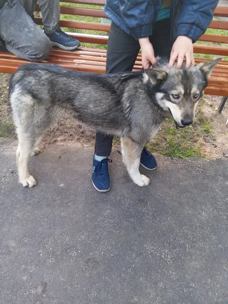 Чёрный пёс с рыжими и белыми пятнами-"подпалинами". Очень чистый, ласковый. Зашёл в 97 маршрутку на остановке Родионова. Выпустили на остановке "ЗАО Маяк".