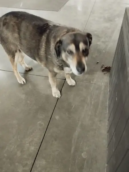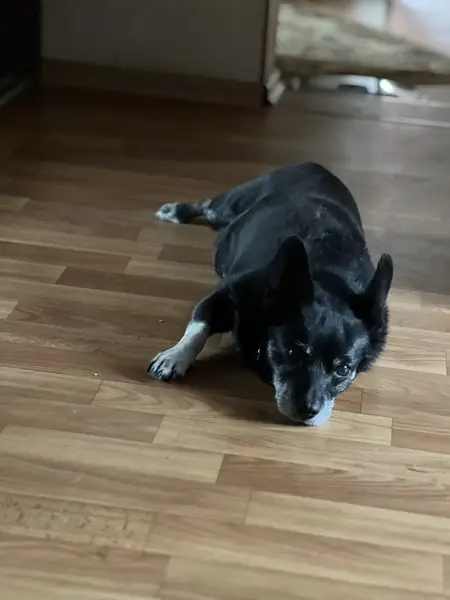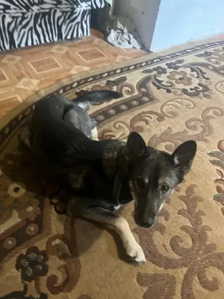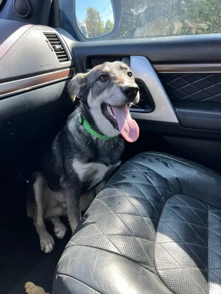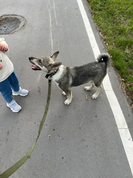 Ехала на маршрутке около средного рынка, а эта собачка стояла посередине дороги на трамвайных путях и нас обеих сторон ехали машины в два ряда, как она ещё до сих пор живая осталась.
