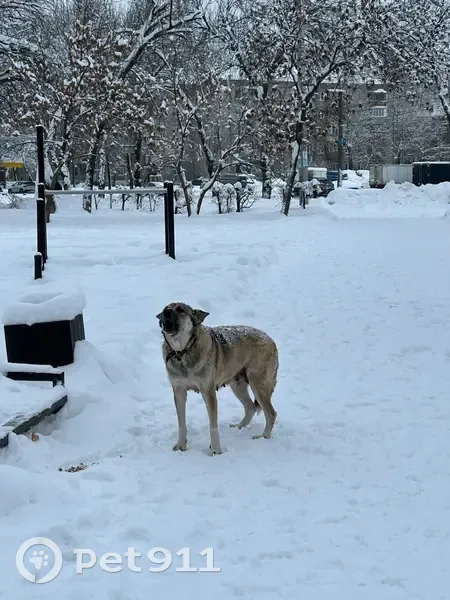 Метис,окрас ближе к серому,ощейник темная кожа,,судя по соскам кормящая мать,с утра воет и лает ,не отходит от одного места,не подпускает к себе. Покормили,еще корм лежит рядом. Очень видимо ищит и прям горюет!