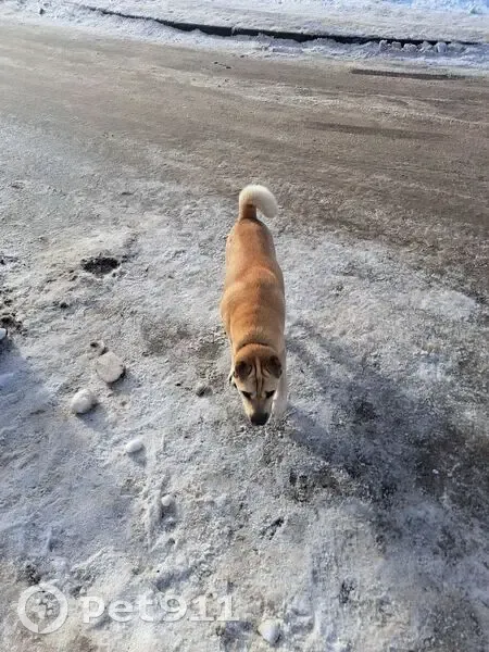Верхние Печеры бегает пес, явно потеряшка. Пес не молодой. Покормила мясом, он съел, возможно голодный. Замечен утром 4.03.2026. Раньше не видели здесь. Сейчас пес в Снежном барсе, до вечера, нужна передержка.