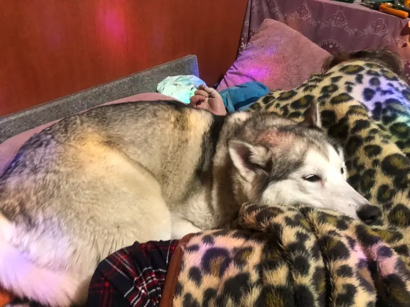 Чья потеряшка? Найдена собака хаски (сука) с клеймом в Московском районе, очень голодная.
