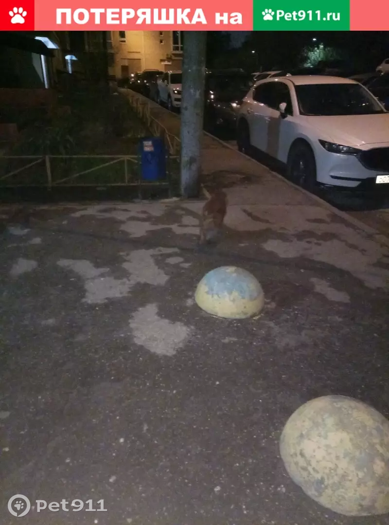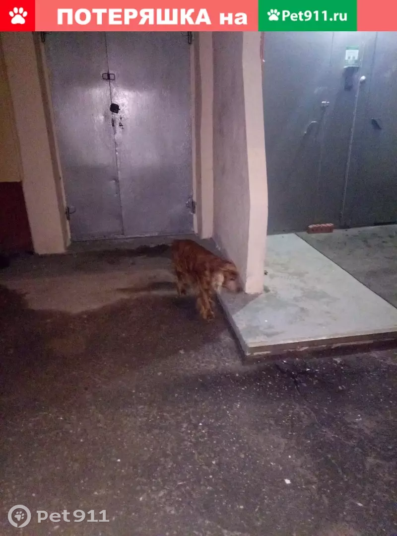 Я не ориентируюсь в породах собак,но это животное упрямо стоит у дверей соседнего подъезда,без ошейника. Соседка говорит,что у них в подъезде таких собак нет. Собака точно шла по следу и не хочет уходить. Если приближается к ней,убегает,видно,что домашняя