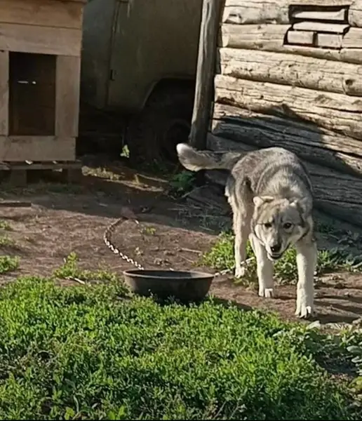 Хаски, сука. Окрас светло-серый. Ухоженная, стрижены когти, с людьми контактна. По ощущениям молодая, зубы чистые. Сегодня забрать нет возможности, осталась там