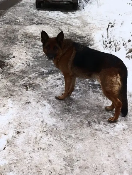 Нижний Новгород. Замечена собака, сука или кобель (не успели рассмотреть) немецкой овчарки в районе остановки 52 квартал (проспект Молодёжный). По внешнему впечатлению в возрасте. Прихрамывает на заднюю правую лапу. Скорее всего потерялась, ходит с палкой в зубах и ищет хозяина.