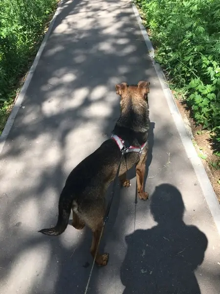 Около 5 дней около торгового центра Леруа Мерлен бегает собака, видно, что домашняя, людей не боится, с ошейником.