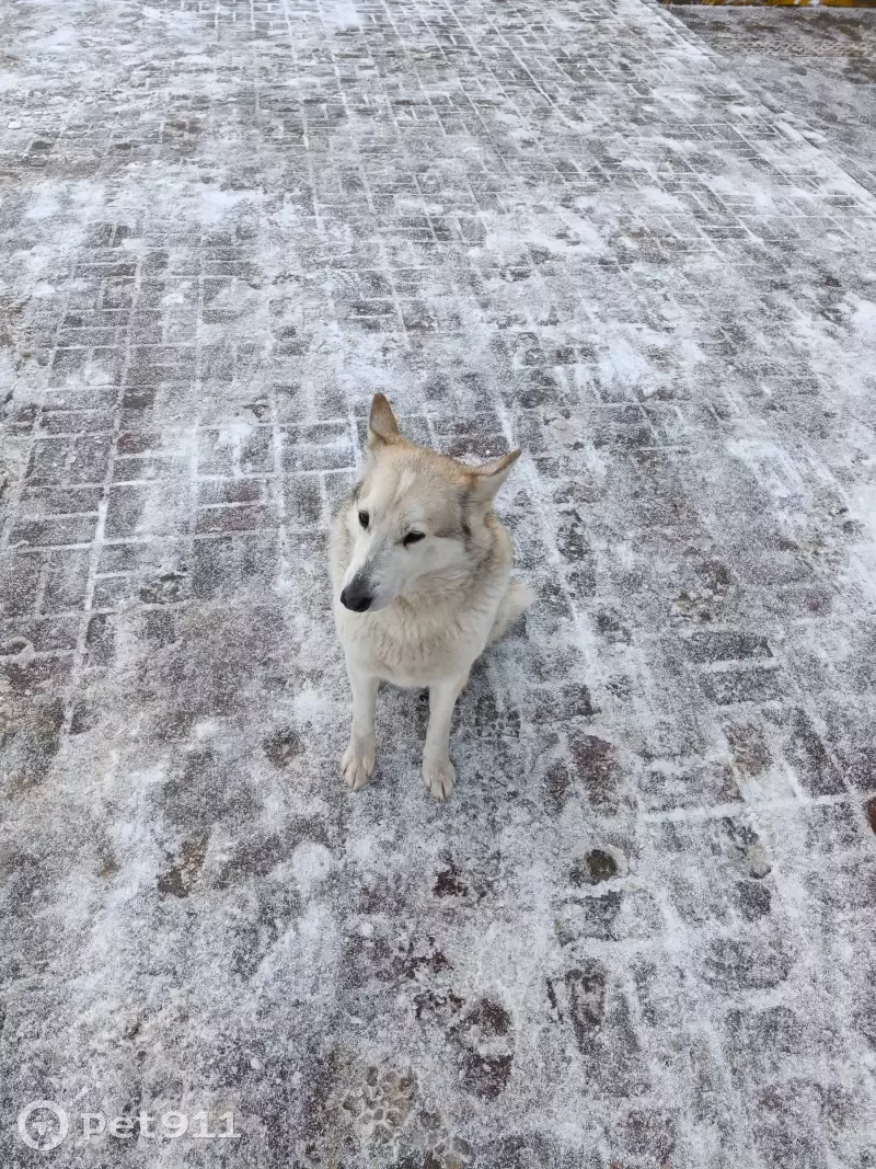 Нашлась собака. Умная, добрая, Даёт себя гладить. Еду не берёт. 03.01.2023 лежала на остановке "Пивзавод "Волга" и всматривалась в людей, выходящих из автобуса. Когда вечером пошёл снег - собака стала переступать с лапы на лапу и вылизывать лапы (видимо, лапы мерзли). От еды отказывается, видел только как ест снег. 04.01.2023 собака сидела около той же остановки у магазина "Магнит", от еды так же отказывается.