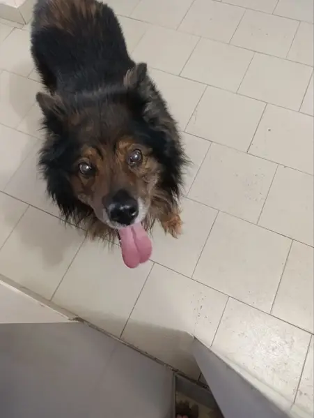 Смесь шпица. Кобель, черного цвета с белым и коричневым вкраплением. Бегал вокруг нашего дома, найден около 20.00