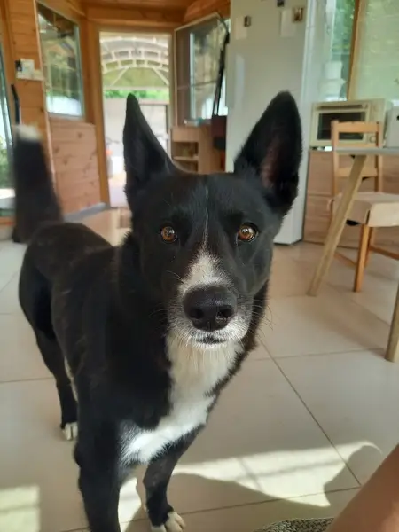 Порода, похоже на лайку, кобель, черно белый, он сам пришел, просил помощи так как то ли его машиной ударили либо пинули , была поджата лапа он прыгал и скулил от боли, на сегодняшний день все хорошо, игривый бегает на четырех лапах, умный, ухоженный.