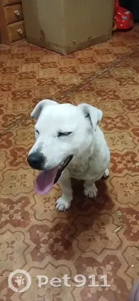 Найдена собака- мальчик. Явно домашний (есть след от ошейника и ухоженный). Порода похожа на джек-рассел-терьер. Окрас белый, на ушах и носу есть темные пятнышки. Бегал по улице в поселке Левинка. Со слов очевидцев, вроде как был привезен на машине и брошен. Мальчик очень ласковый, легко идет на контакт с людьми. Может кто узнает своего любимца