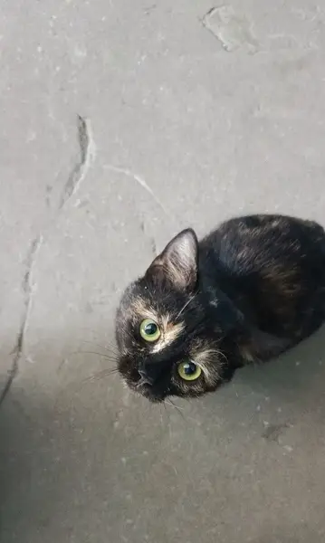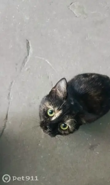 Молодая кошечка черепахового окраса, очень активная, видимо ловила мушек на оконной сетке и вывалилась вместе с сеткой.. Любит когда гладят лапки( подушечки), вытягивается если положить на спину.