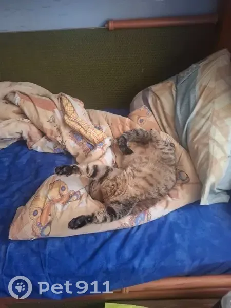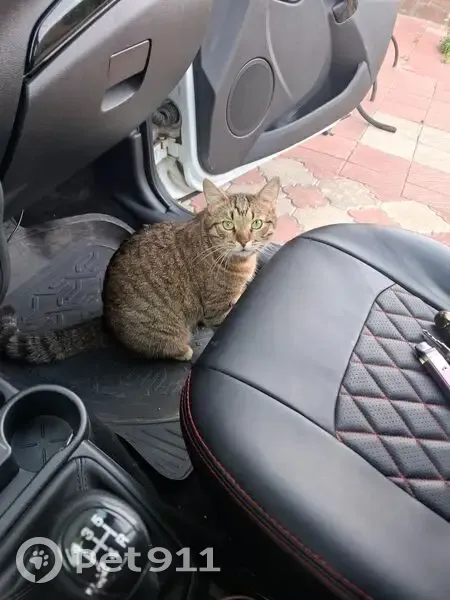 Серый тигриный с коричневыми оттенками при ночном свете. Кот 2-3 года. Кастрирован, возможно до сих пор осталась шишка(ранка) на макушке после драки с другим котом