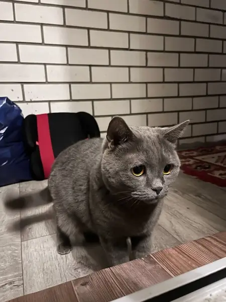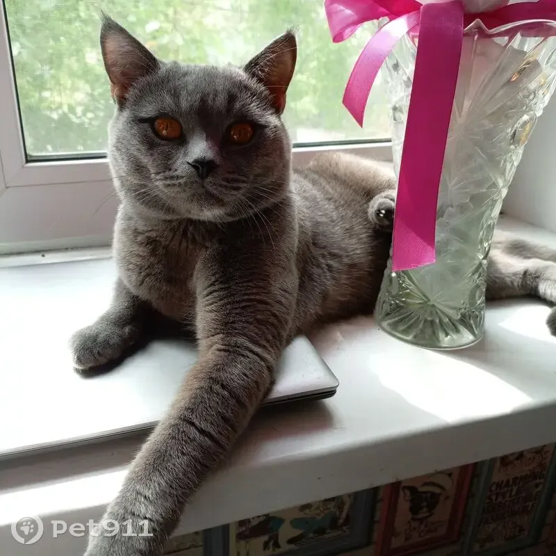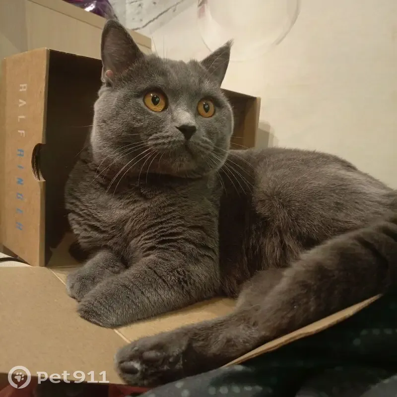 Этот кот серо-голубого окраса с жёлтыми глазами. Он очень пуглив, но не боится, когда его берут на руки, хотя может больно царапаться. Кот выпал из окна квартиры, которая находится на первом этаже. Он не уличный, а домашний, мог куда-то убежать и спрятаться, свернувшись в клубок. Возможно, он боится откликаться. Его очень ждут и надеются найти. Хозяйка изо всех сил старается его отыскать и надеется, что добрые люди помогут ей в этом.