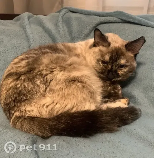 Кошка цвета перепелиного яйца, в крапинку. Черный нос, черные кончики ушей, на передних лапах по одному белые пальчики. Выбежала в подъезд Казанское шоссе, дом 17, 2 подъезд около 12:00 дня 26.11