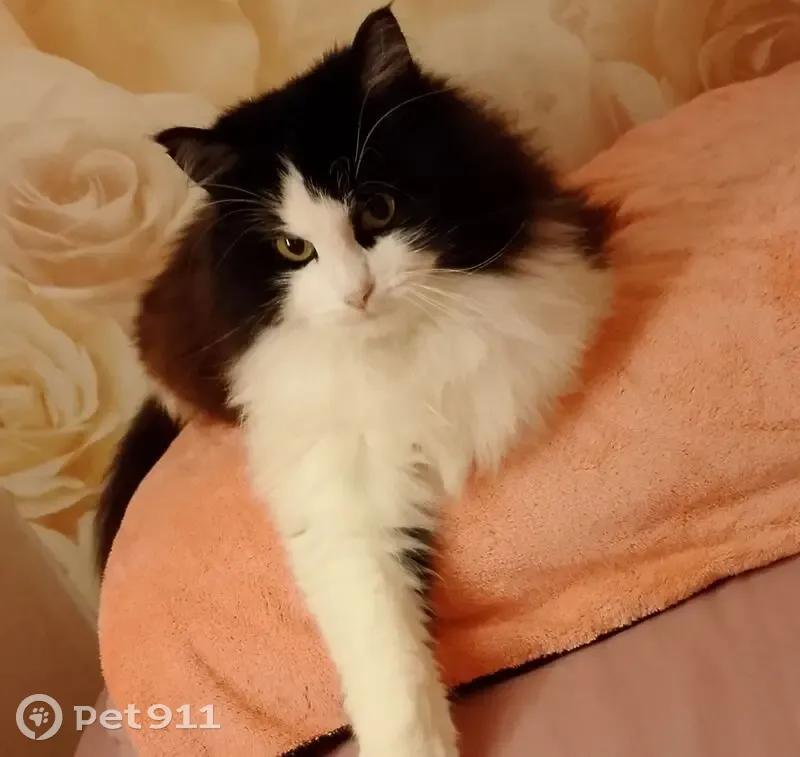 Окрас черно-белый ,пушистая,на носу царапина(с кем то подралась).Пропала от подъезда ... Никогда далеко не уходила ,всегда гуляла вблизи дома уже 7 лет ... Охраняла территорию и ждала меня с работы.Допускаю ,что ее кто то забрал ,сама не могла уйти это точно.
