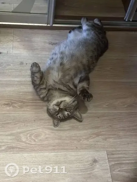 Пропал кот, допускаю, что мог выпрыгнуть из окна 8 этажа или выйти через дверь. Зовут Марсель, 10 лет, окрас серый с черными полосами, крупного размера, задние лапы немного травмированы, на животике мало шерсти.