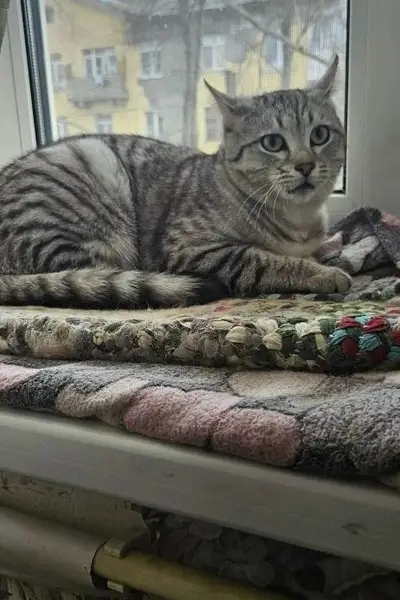 Предположительно выбежал из квартиры, когда кто-то выходил, не заметили. Моисей кастрирован, имеет серый окрас в полоску, хвостик тоже в полоску как у енотика, темно-желтые глаза, среднего телосложения, не толстый, весит в районе 3-3,5 кг, вислоухий.