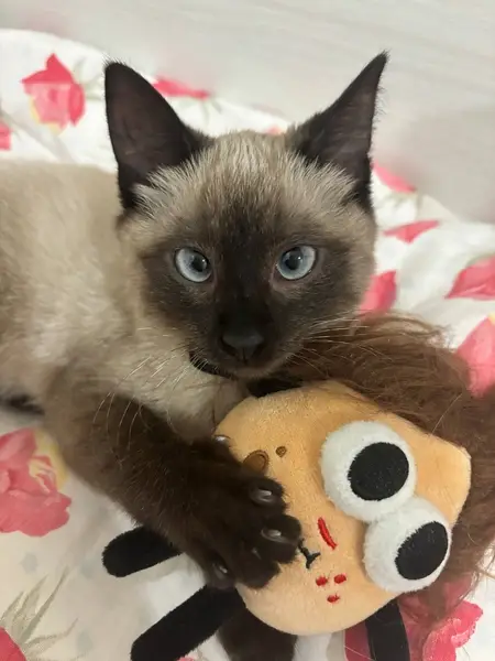 Бежевый окрас, голубые глаза.
