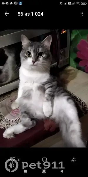 Пропал кот,возраст 2 года,гулял возле дома в полисаднике,видимо убежал и дорогу домой не нашёл.Далеко никогда не уходил,всегда на глазах был.Помогите пожалуйста найти кота, мы очень переживаем.Окрас серый с белым,большие желтые глаза, очень ласковый,контактный.