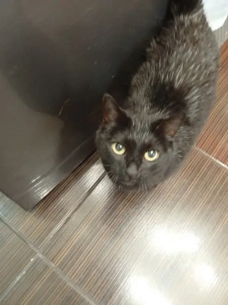 видела 29-30.11.2024 на аллее вдоль пр. Гагарина между остановками Дворец спорта и гостиница Ока. Домашний, чистый, белую шерсть не заметила на шее, но видела поздно вечером. Дался погладить, но поймать не смогла