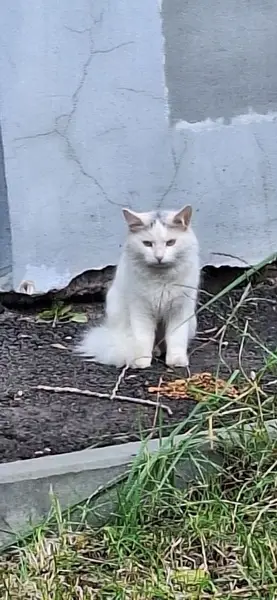 Белый пушистый, между ушами темные пятна, около носа мелкие рыжие, хвост темный, кастрирован, возраст около года, чужих боиться. Котик от бездомной кисы, плохо видит, не умеет мяукать. Проживает в Снт5, проезд 56, около колодца. В лоток не ходит, выходит на улицу. Просьба всех кто владеет любой информацией, сообщить. Если его взяли себе, и он вам не ,, подошел,, верните пожалуйста обратно, в проезд, так как он не знает дорогу, будьте милостливы.