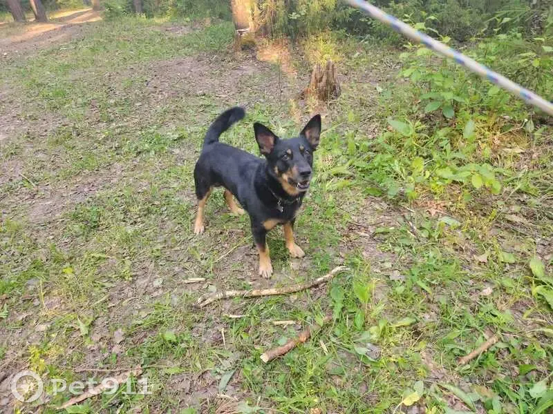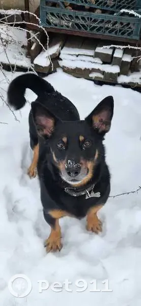 Чёрный окрас с рыжими подпалинами Размером с корги, лапы короткие.Очень похож на овчарку С коричневым ошейником, на нем титановый жетон в виде косточки ,с выгравинной кличкой и номером телефона.Хвост кольцом. Убежал в Канавинском районе ,с ул Искры ,недалеко от парка 1мая Плохо знает этот район.Откикается на кличку Арчик,но к чужим не идёт.