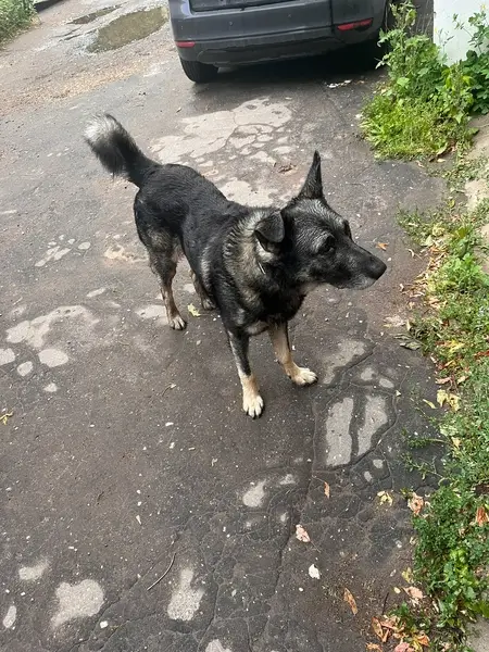 Окрас: черная, с белым галстуком, в красном ошейнике. Убежала утром в районе ул. Строкина 12 (автозавод) Ласковая, может пойти за людьми, особенно за детьми.