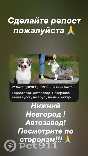 Вознаграждение!!! Размер Ниже колена ! Мраморного окраса Убежала с Горбатовки 2.01.26 в 17.00, в 23.00 бежала в сторону Доскино по ул. Пролетарской (больше нет ни одной зацепки) 3.02 видели похожую собаку на поводке с женщиной в районе улиц Плотникова, Краснодонцев, Школьная, Строкина (район автозавод , пр-т Молодежный) Может быть уже где-угодно! Обратите внимание на сотка гуляющих в ваших дворах !!! Она не очень контактная к чужим(но выборочно может подойти) не пытайтесь поймать, если не идет на контакт позвоните и сделайте по возможности фото/видео и проследите за ней -мы приедем!!! Если в вашем дворе у кого-то появилась похожая собака -сообщите пожалуйста (конфиденциальность гарантируем) ВОЗНАГРАЖДЕНИЕ ЗА ДОСТОВЕРНУЮ ИНФОРМАЦИЮ И ОТСЛЕЖИВАНИЕ Помогите пожалуйста +7 (920) 028-66-88 Маша +7 (910) 870-35-48 Рома +79038494931 Света