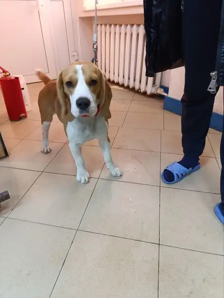 Триколор, осторожный, не кусается, оранжевый ошейник , на ошейнике номер телефона, был одет в серую помпону , клеймо и чип
