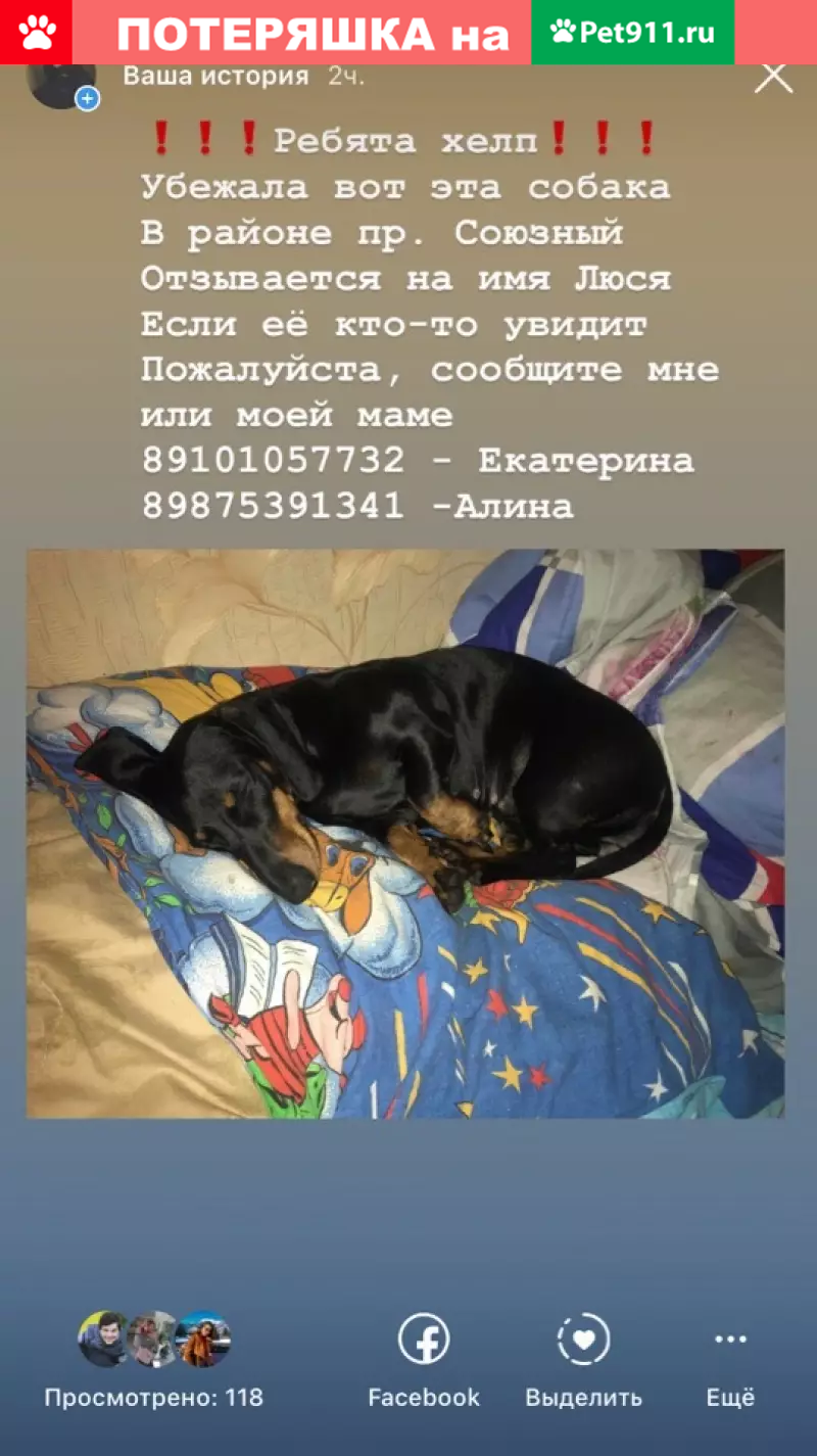 Пропала собака, такса, девочка, зовут Люся