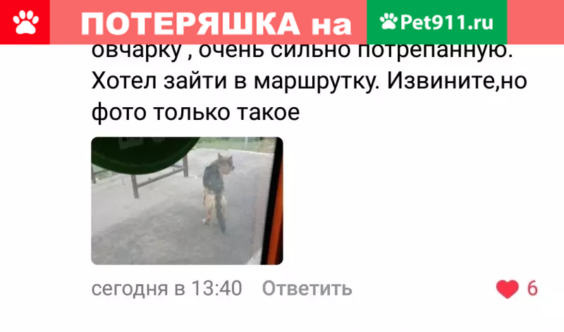 Потерялась собака, немецкая овчарка, 7 лет, кличка Рекс. Пёс неагрессивный, дружелюбный, легко идёт на контакт. Был замечен 06.08.19 в Гнилицах. Пожалуйста помогите в поиске! Вознаграждение. т.