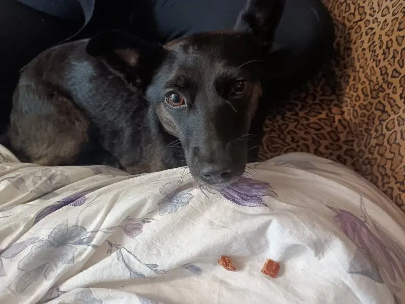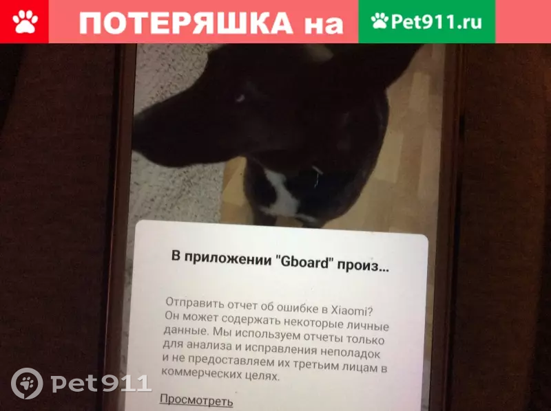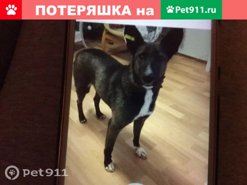 Беспородная. Кличка Герда. На правом ухе желтая клипса с номером 18-0460. От головы до живота белая манишка, на передних лапах белые "носочки". Потерялась между Родионова и Деловой 1 января 2020 года в 17.00. Очень пугливая, абсолютно не агрессивная. Вырвалась из ошейника, испугалась звука петард.