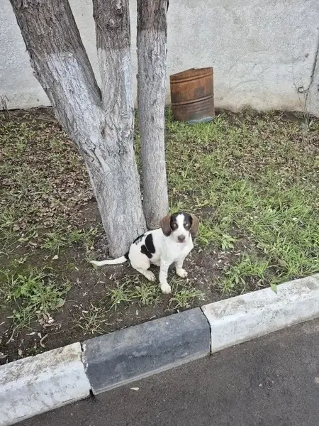 Порода курцхаар, кобель 5 месяцев, кличка Скиф. Окрас коричневый с белыми пятнами, хвост купирован. На собаке имелся ошейник коричневого цвета.
