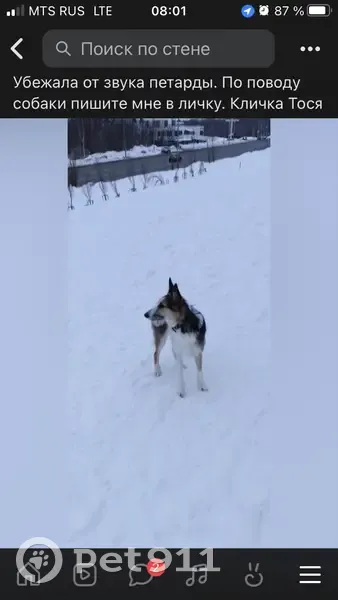 Убежала собака, зовут Тося, испугалась петард. Район Щелковского хутора, жк Цветы, Цветы 2. Собака скорее всего не подойдет, пожалуйста сразу позвоните хозяину