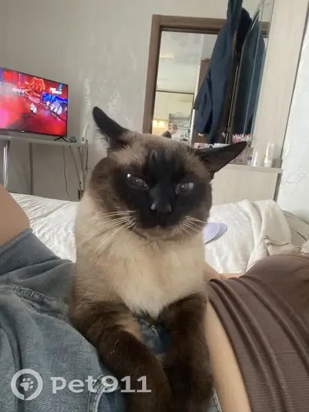 Старый котик 18 лет. Порода Тайская, похож на Сиамского. 1 клык отсутствует тли поврежден, изменен прикус из-за этого, глаза голубые с красным отливом. Худощавый.