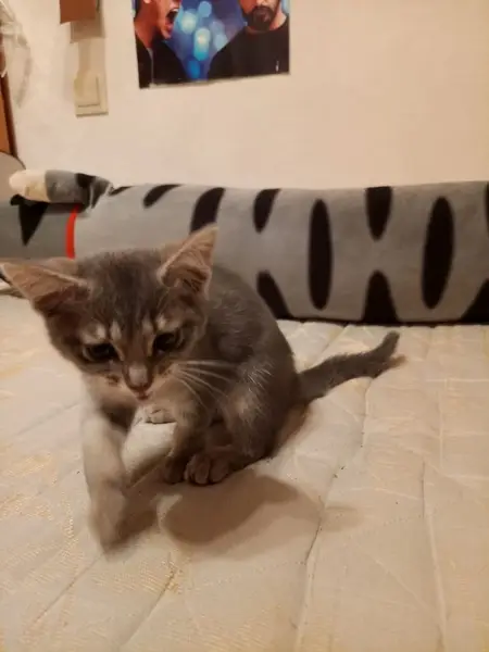 Старый , 10 лет . Пережил падение с окна, на мордочке есть не большие старые шрамы. Худой, прощупываются кости. Кот болеет, слабый жкт. Ласковый, добрый, пугливый.
