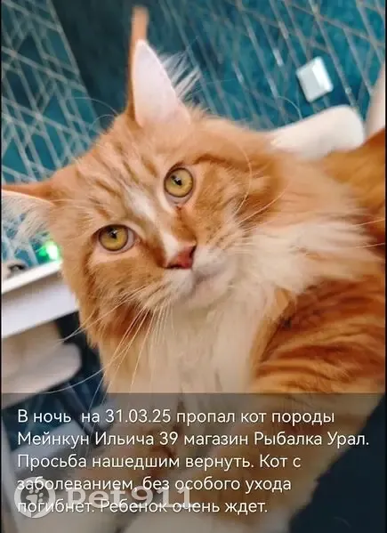 Кличка Честер, рыжий, домашний, больной и нуж...