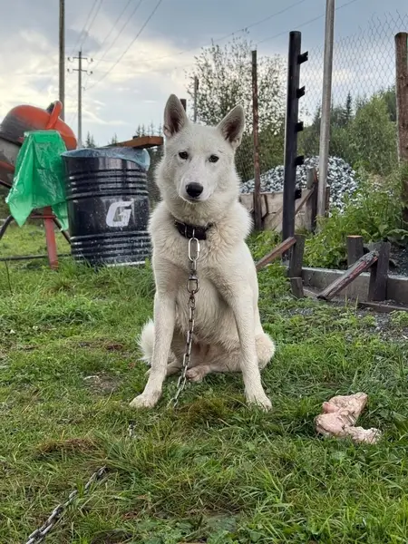 Ласковая, знает команды, дает лапку, глаза разного цвета, худая, возможно из отлова. Не боится машины, хочет залезть, значит ездила раньше. Пришла в сад Нижней Туры.