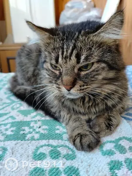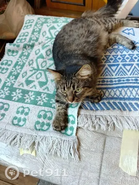 Сидел около дома, похоже ждал хозяина. Взяли в квартиру. Спокойный, ласковый (трется о ноги постоянно). Много спит.