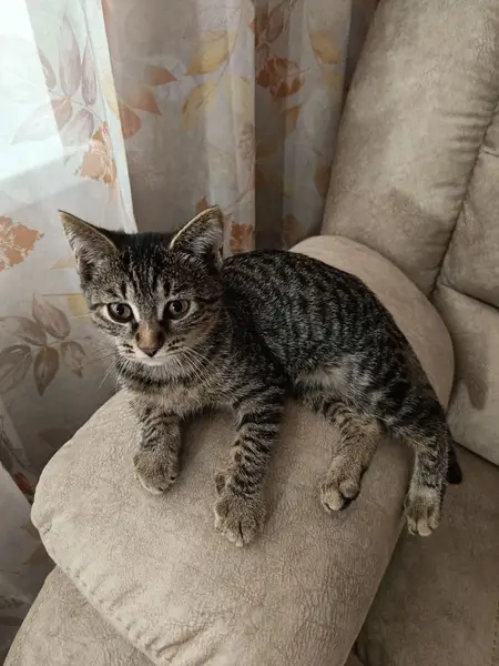 Серо-коричневая кошечка в полоску, желтоватые глаза,небольшая, ласковая, пропала на Декабристов 3в предположительно ночью выпав из окна третьего этажа. На фотографии она маленькая, сейчас же выглядит старше. Очень переживаем за нее и молимся чтобы нашлась. Прошу вас помочь нам.