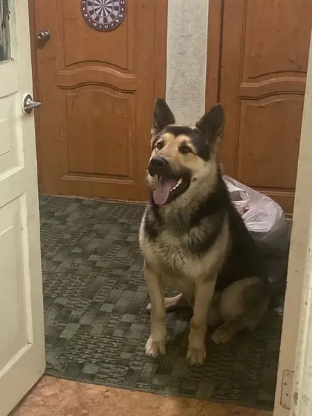 Немецкая овчарка, кобель, темного окраса со светлыми пятнами с зади, тряпичный ошейник зеленоватого оттенка. На 31.07 был на территории рынка. Возможно его вчером 29.07 искала девочка в том же районе