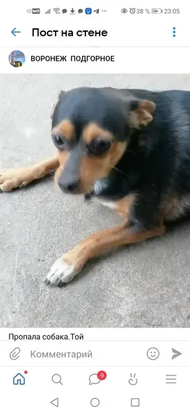 Найдена собака (девочка) в Новой Усмани. Оставили у себя на передержку, ищем старых или новых хозяев. Размером собачка чуть больше кошки,хвост купирован Телефон 89585099620