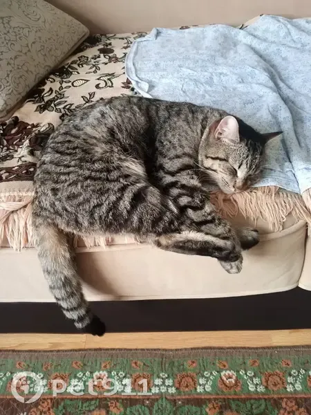 Пропал полосатый кот, 4 года, очень добрый, пугливый, стерилизованный. Вышел во двор и не вернулся.