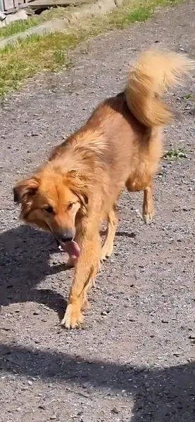 Найдена собака, с ошейником,окрас рыжий, умная, добрая, к людям настроена доброжелательно. Подобрали в деревне Красные станки, сейчас живет в деревне Поляны, рядом с Красными Станками.