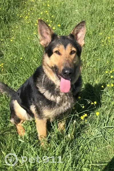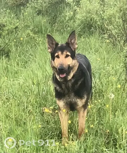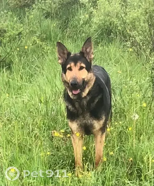 Суна крупная, похожа на овчарку, на голове как будто чепчик темный, крупные лапы. Без ошейника, разорвала его, когда убегала, видимо кто-то или что-то напугало. Суна контактная, умница, что ее заставило убежать, не ясно. Чипирована и стерилизована.