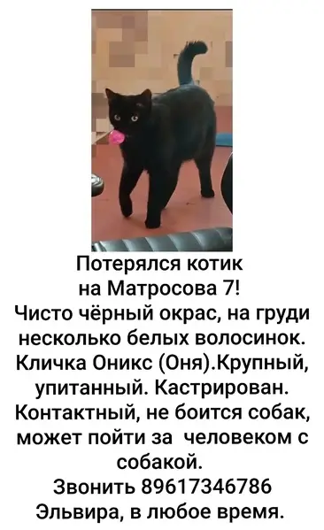 В районе ул. Пролетарской (район Бажово) третий день ходит кошечка, сегодня прибилась к нашему двору.Черная, жёлтые глаза, шерсть недлинная, но очень пушистый хвост. Возраст 5-6 месяцев примерно.На фото выглядит хуже, чем в жизни, сфотать удачно сложно—ластится, просится на ручки, на самом деле очень красивая. Видно, что была домашней, чистая, ласковая, не тощая, жалобно мяукает, то есть без дома ей явно некомфортно. Неравнодушный хозяин, найдись!