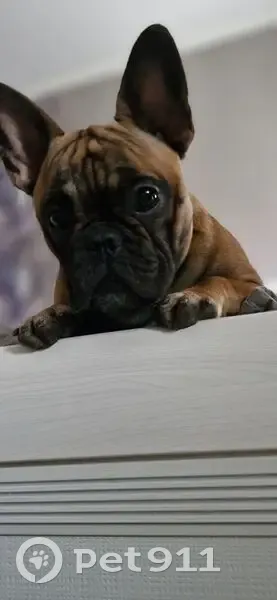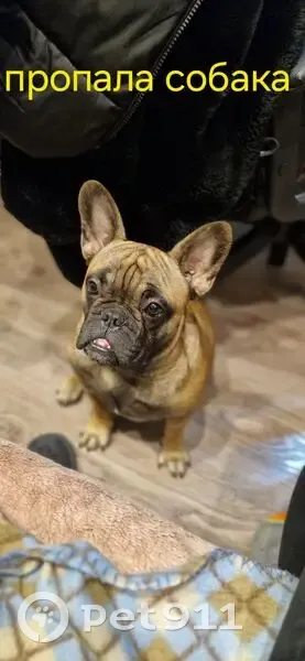 Девочка, окрас -коричневый, мордочка приплюснутая чёрная. Убежала из двора незаметно. Собака домашняя, находится на диетическом питании в связи с аллергией