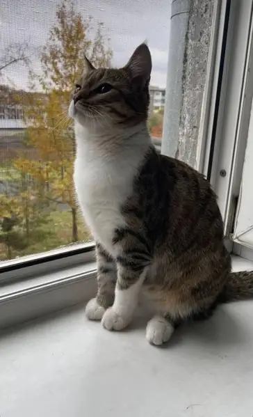 Нашли вечером, сидела забившись на дереве. Кошка контактная, чистенькая, ласковая, скорее всего домашняя. Кошечке по возрасту меньше года, на вид 5-7 месяцев.