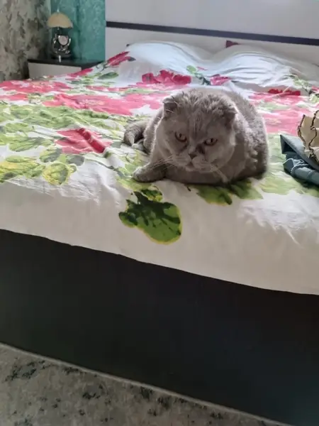 Упитанный, окрас дымчатый, с характером.