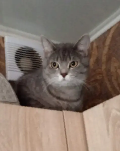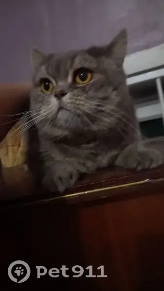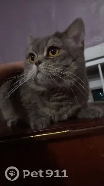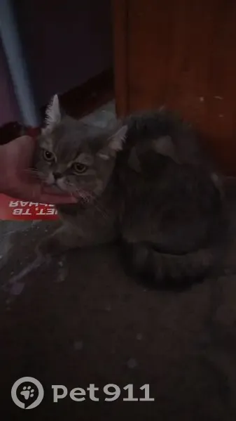 Порода похожа на шотланскую или британскую, цвет серый и немного белые оттенки, возможно есть коричневый отлив, но может просто грязная. Видно что домашняя, не худая, но время провела на улице, слиплась в клочки шерсть.Боиться, забивается в угол. Домой не смогла взять, она с моей кошкой и котом сильно шипят друг на друга.