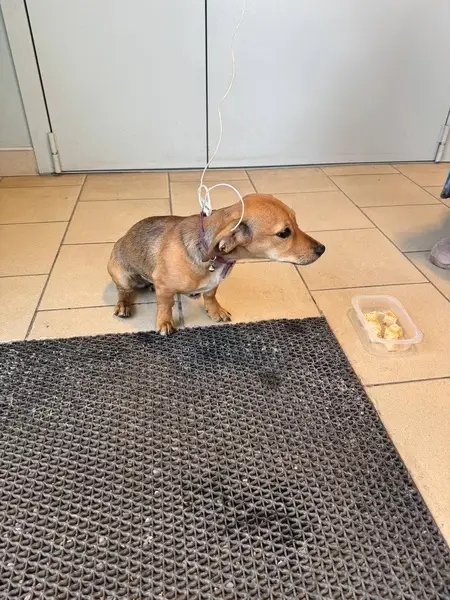 Найден кобель, на вид месяцев 6. Окрас шоколадно-палый с черными вкраплениями. На нем ошейник светло-зелёного цвета с деталями из черного пластика. Пёс приветливый, на контакт идет.